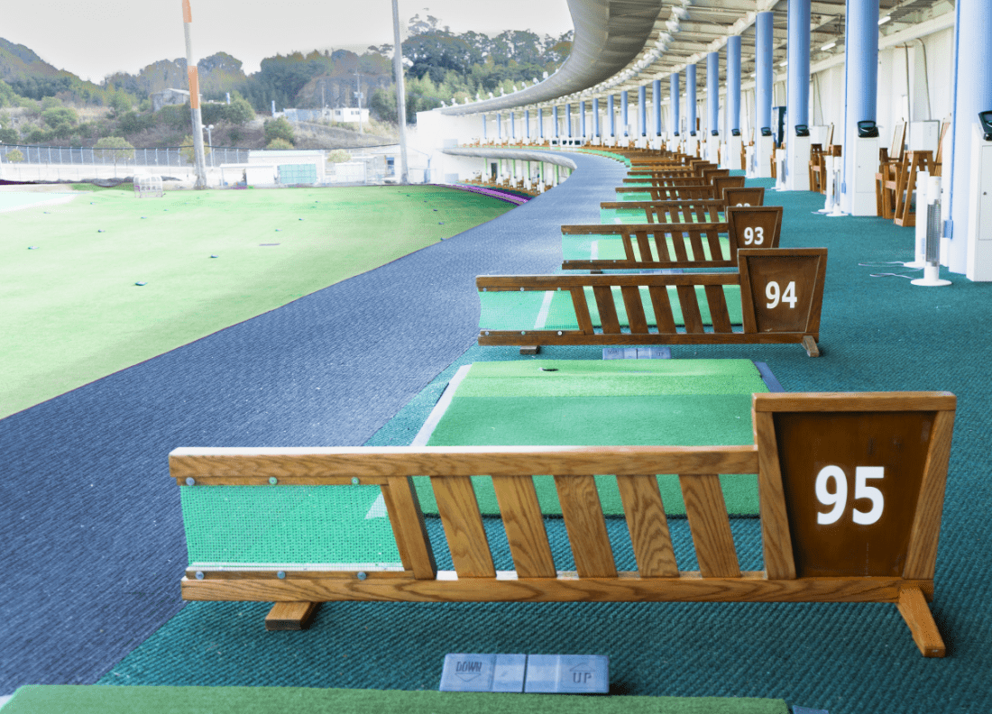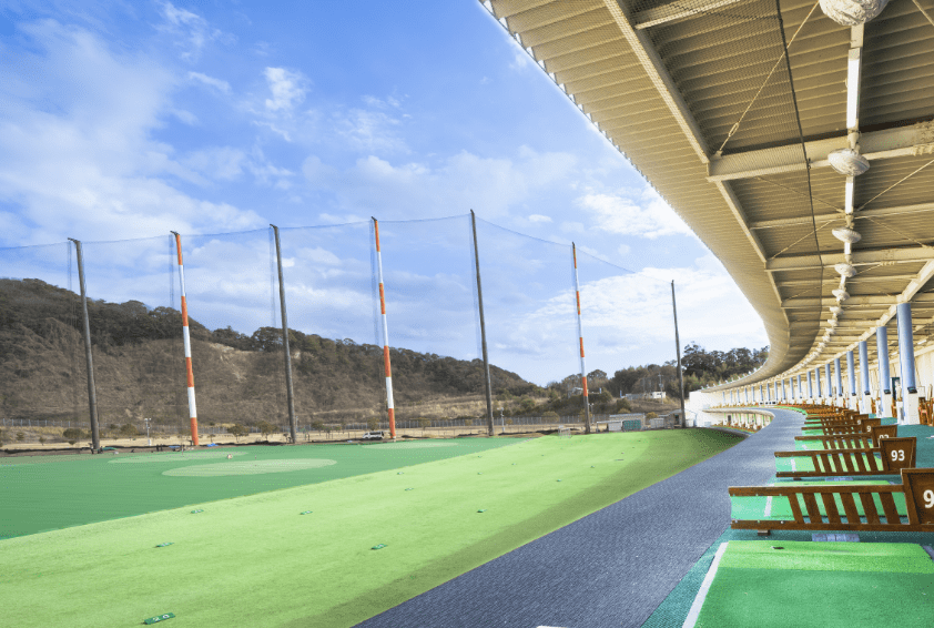 最長の270ヤードの圧巻のロングフェアウェイで青空に向かって思いっきりスイングができるのが最大のポイントです。 1階と2階で100打席あり、のびのびとプレーしていただけます。