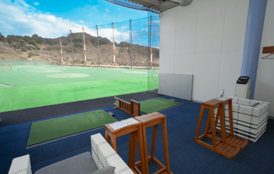 各打席間は2.7mのゆとりがあり男性はもちろん、女性にもご満足いただける快適なゴルフレンジです。左利きの方用の打席も中央付近にも配置しております。