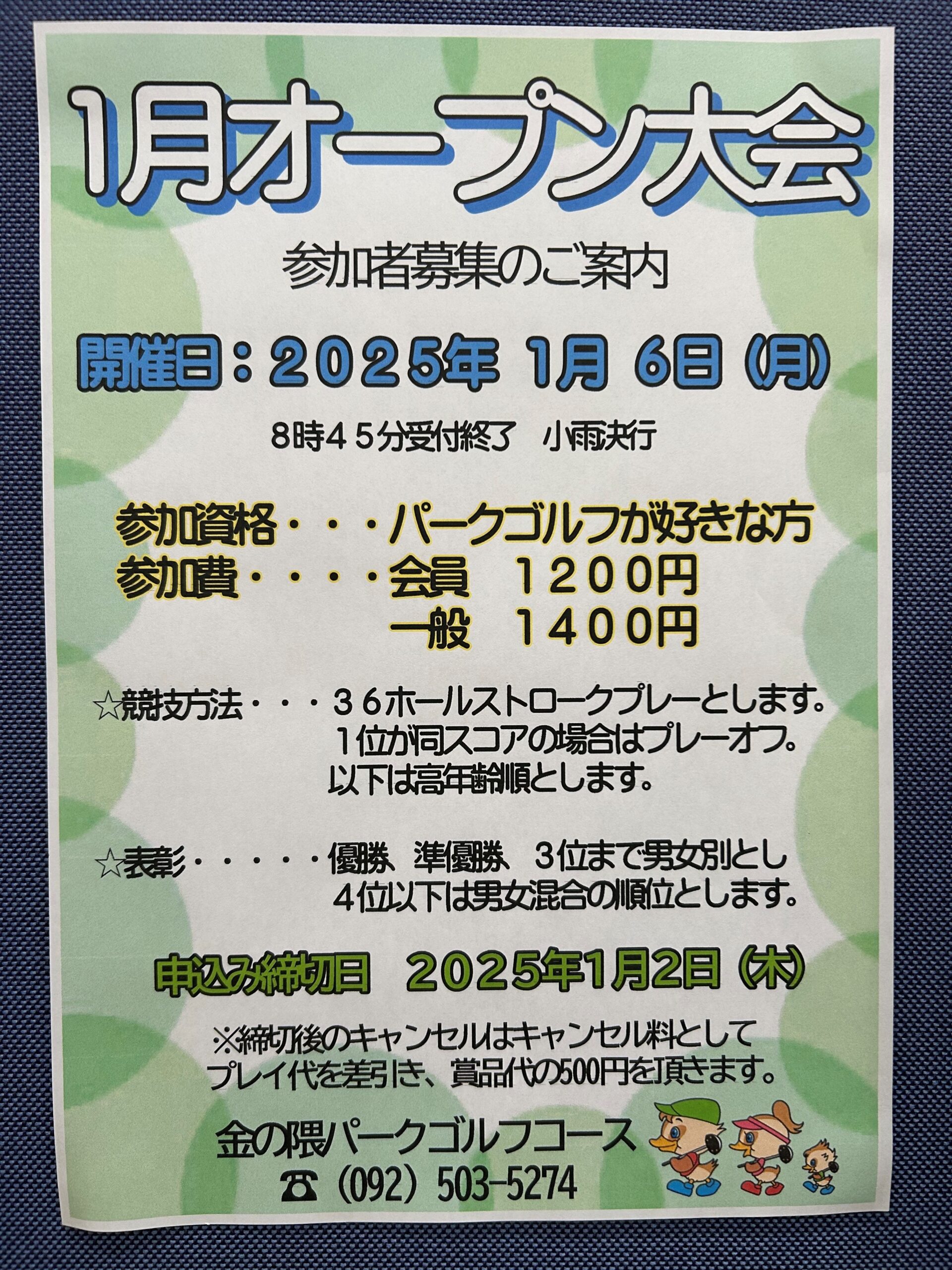 ※申込締切は、1/2(木)です パークゴルフフロント又はお電話にてお申し込み下さい✨✨