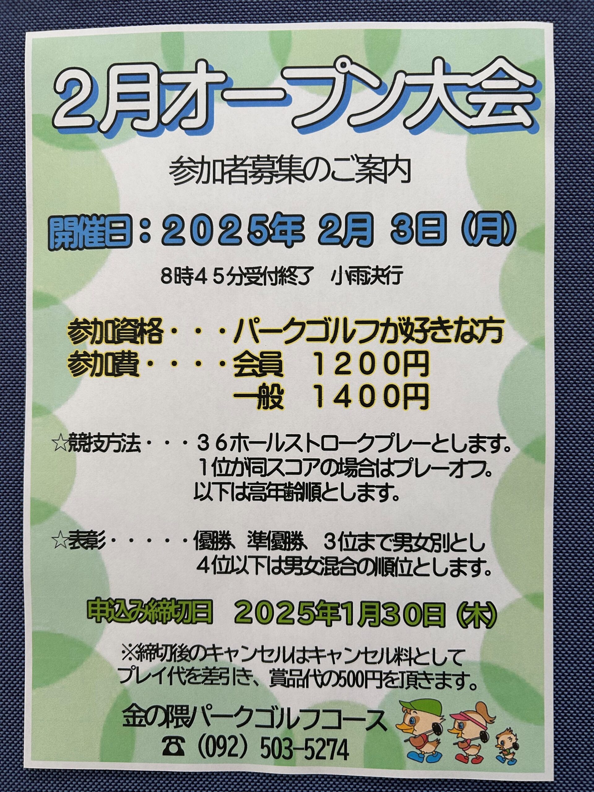 2月のオープン大会 参加者募集のご案内です⛳