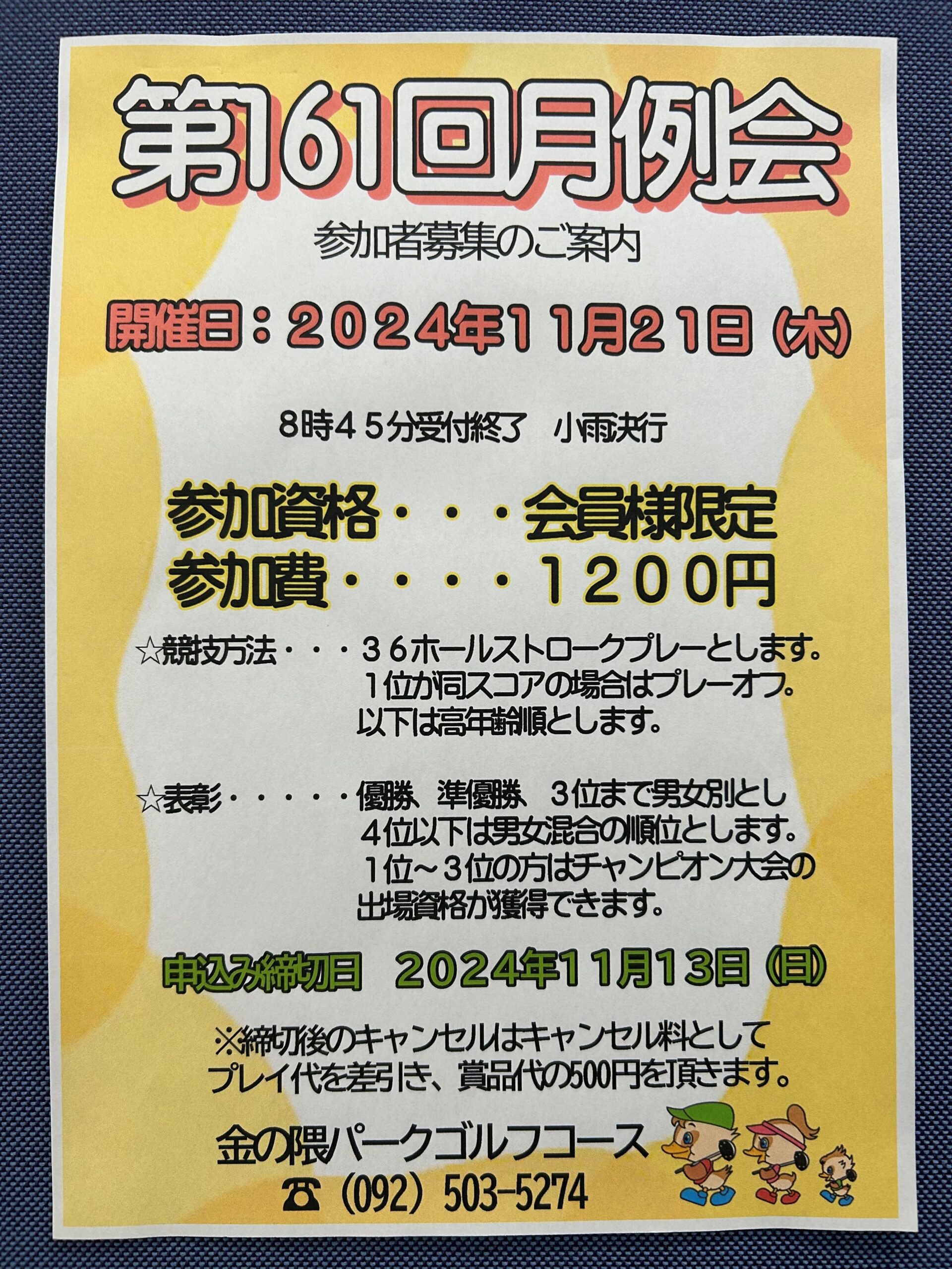 大会申込締切は11/17(日)ですので、お早めにフロント又はお電話にてお申し込み下さい✨✨