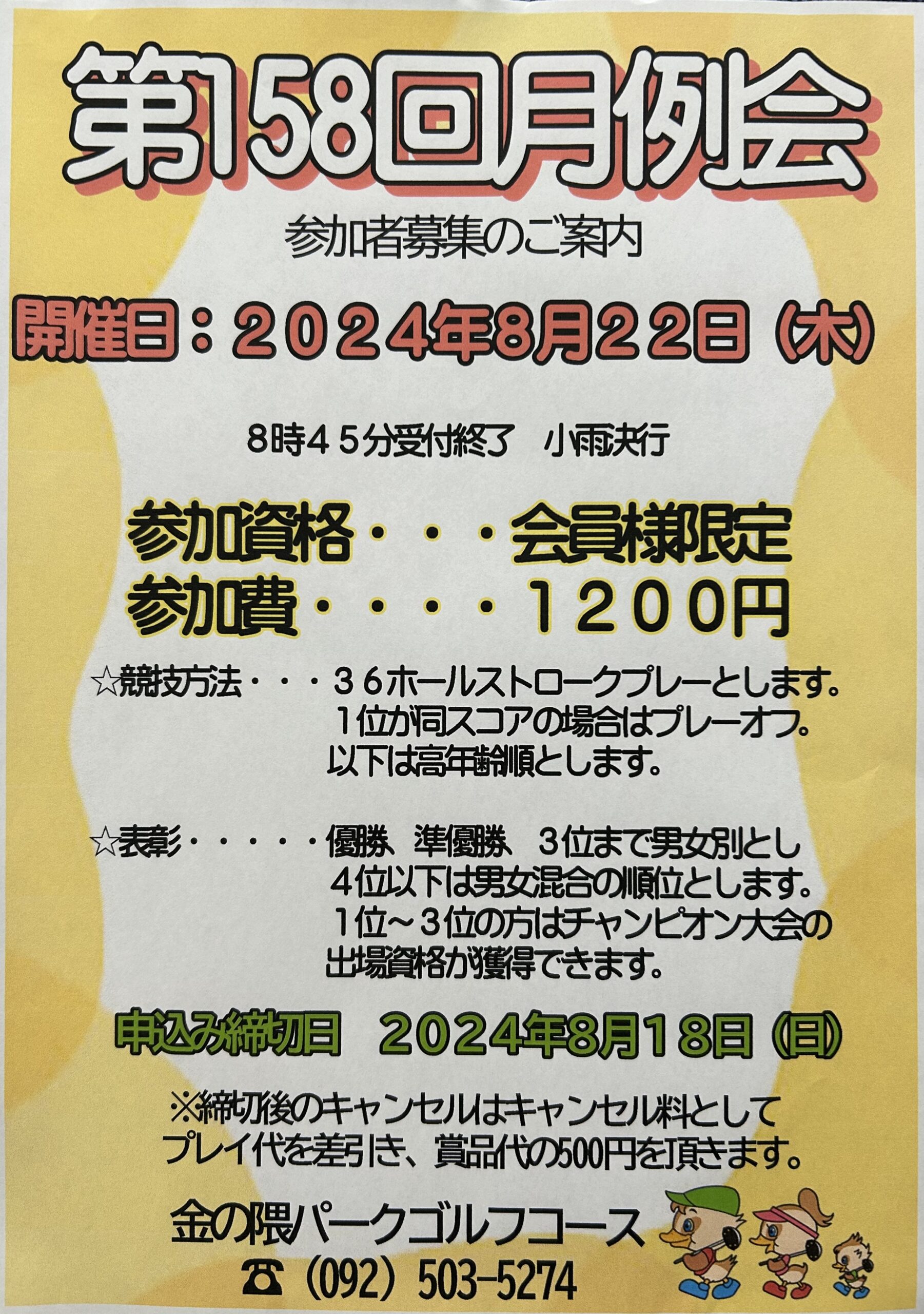 大会申込締切は8/18(日)ですので、お早めにフロント又はお電話にてお申し込み下さい✨✨