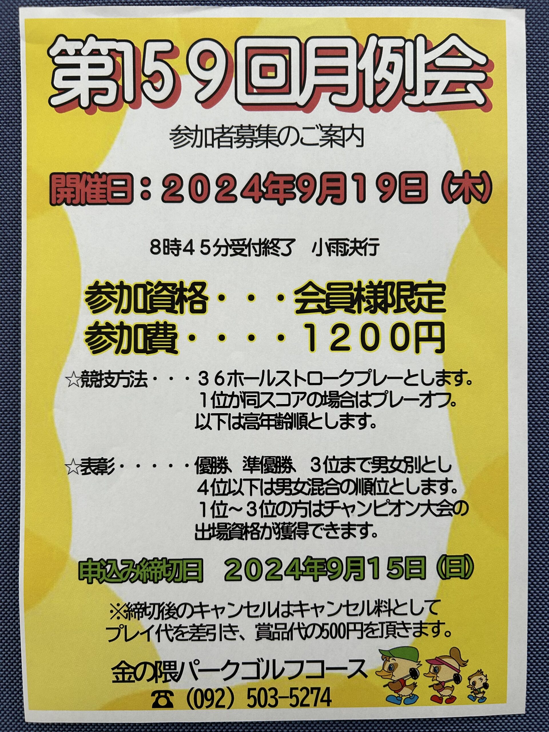 大会申込締切は9/15(日)ですので、お早めにフロント又はお電話にてお申し込み下さい✨✨