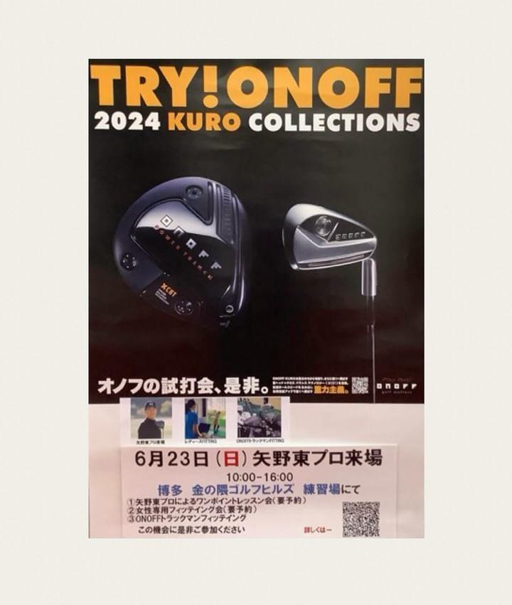 イベントのご案内です 6/23(日) 10:00〜16:00 当施設1階14・15・16打席におきましてグローブライド株式会社様主催によります “オノフの試打会”が開催されます 矢野東プロが来場されます ご予約はオノフまで