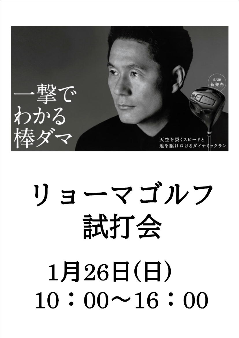 リョーマゴルフ試打会 1月26日(日) 10:00~16:00 18番打席