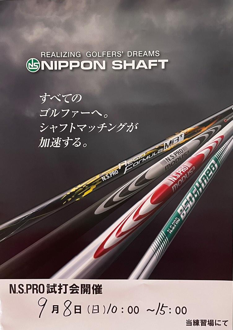 9月8日(日)に日本シャフト㈱様によります、日本シャフト単独試打会が開催されます。 10時~15時までとなっております。 お悩みがある方はご相談されてはいかがですか? 皆さまのご来場を心よりお待ちしております🏌️♀️