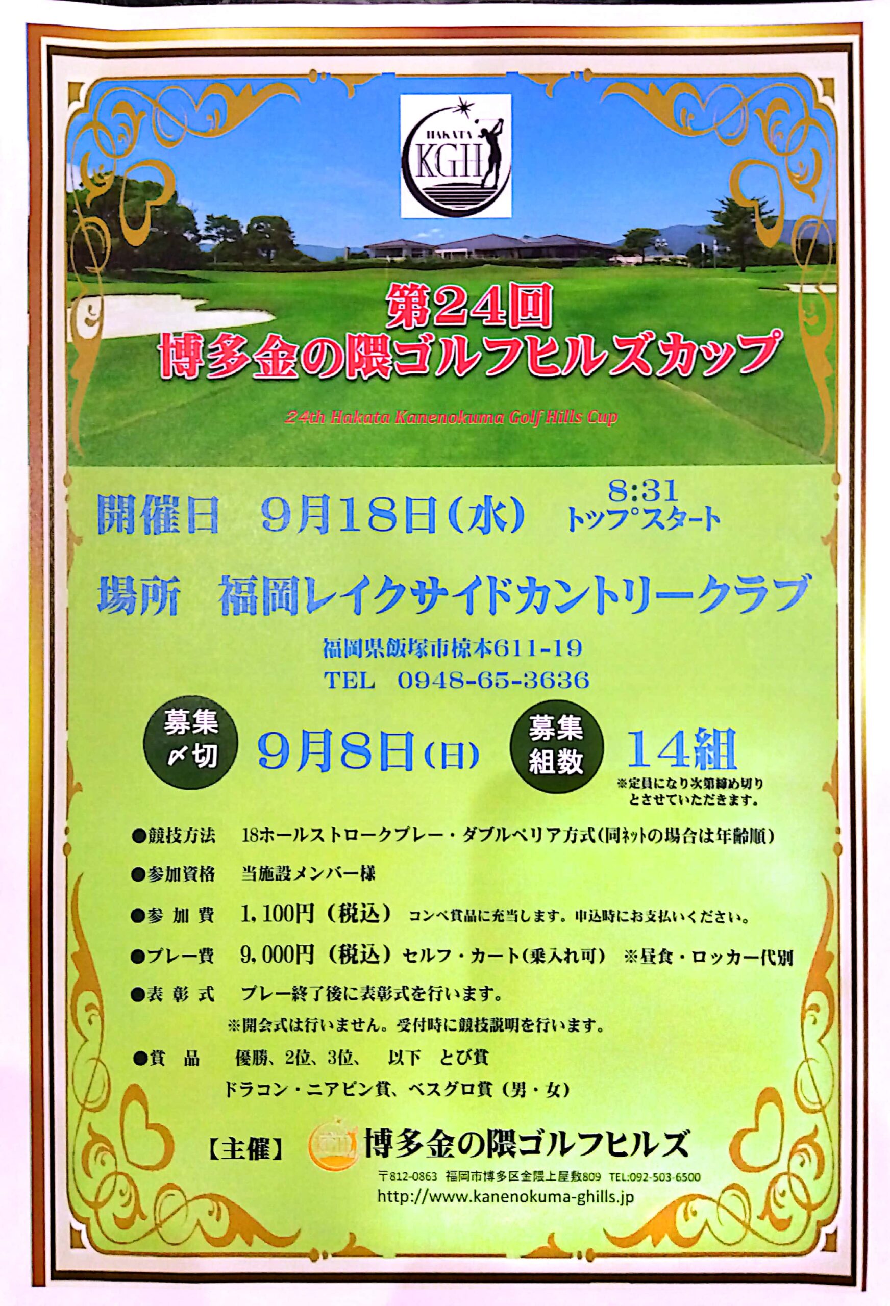 本日は【第24回 博多金の隈ゴルフヒルズカップ】のお知らせでございます📢