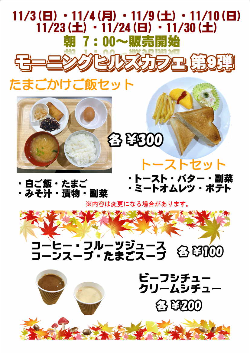11月のモーニングヒルズカフェ第9弾のお知らせでございます