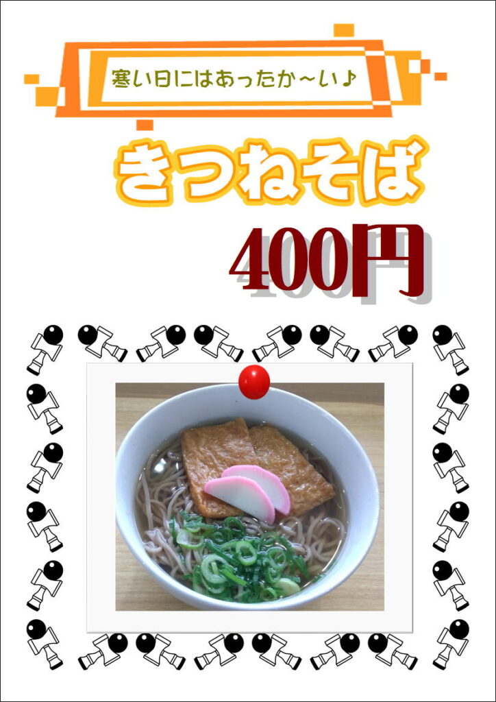 コーヒー、コーンスープ、たまごスープ、ジュース 各¥100
