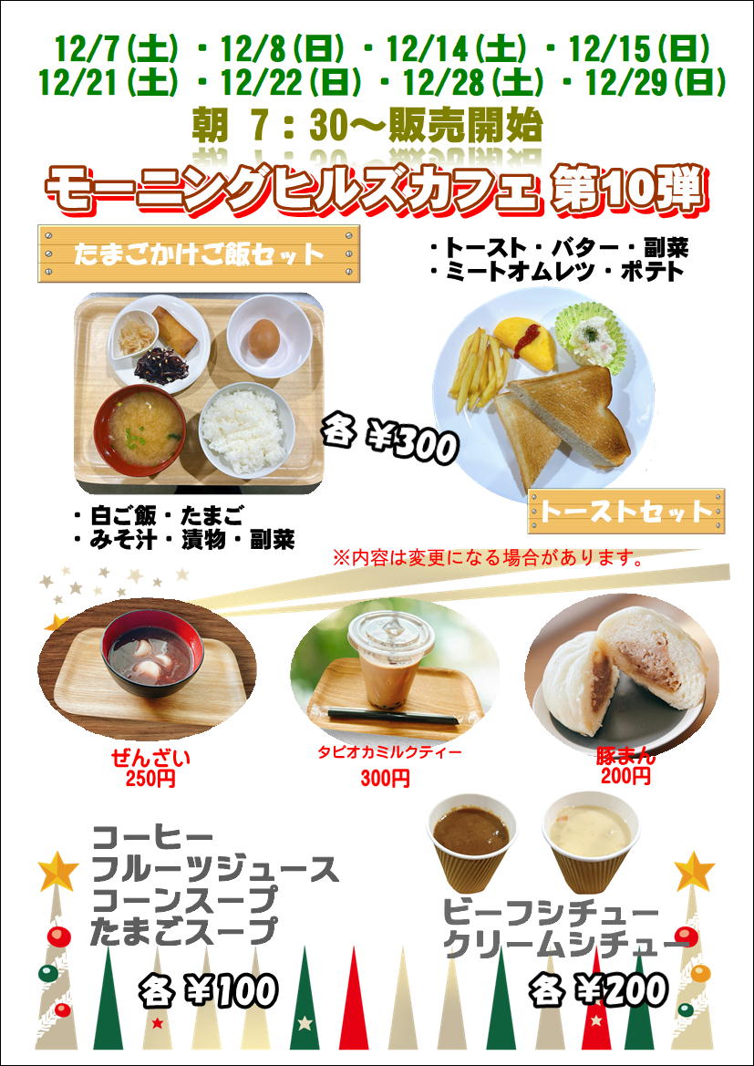 12月のモーニングヒルズカフェ第10弾のお知らせでございます